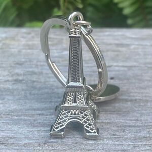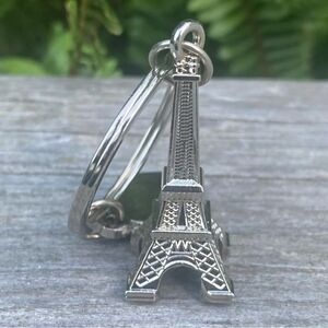Eiffel Tower Paris Silver Keychain/Bag Charm w Oval Charm NWOT France Bonjour