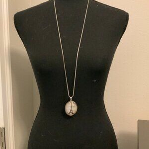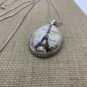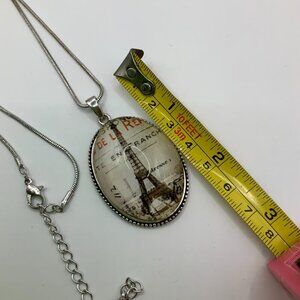Eiffel Tower Paris Vintage Style Cabochon Silver Tone Pendant Necklace