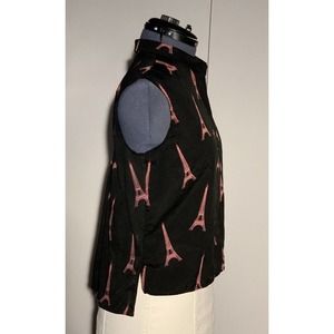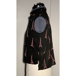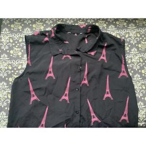Eiffel Tower Print Paris Pink H&M Black Sleeveless Button Down Blouse Top Small