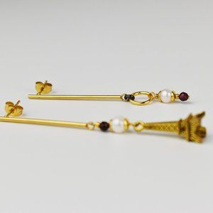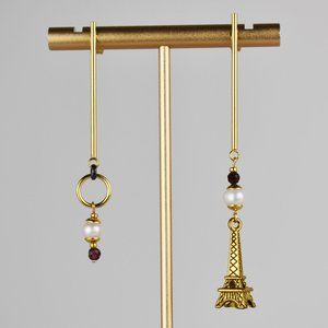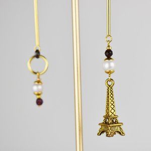 Eiffel Tower earrings dangle, asymmetrical earrings, long bar drop earrings