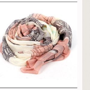 Beautiful scarf/wrap. Paris with Eiffel Tower print. Aprrox 66" long and 32" wide. Great to wrap around ur neck or even around a handbag. Price firm. Comes in original packaging. The fabric is so soft and beautiful that u won't be disappointed. Great for gifts!๐