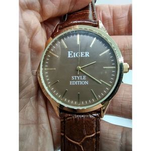Eiger Style Edition Brown Watch. The watch is brand new and never worn. Crystal has plastic cover to protect it. The watch has a new battery. Check out the photos and video for more details and aspects of the watch. The watch is actually classy and looks classy.