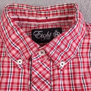 Eight 732 Shirt Men's XXL Red Plaid Button Down Short Sleeve With Pockets