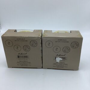 Eight Artland Margaux round ceramic coasters. There are four each of two flower patterns. Dishwasher, microwave and oven safe. Pre-owned.