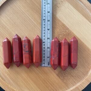 Eight Brachiated Jasper Double Point Set. You will receive the eight double points shown in this picture and each point is approximately “1” tall. Great for manifestation grids! Bamboo tray sold separately.