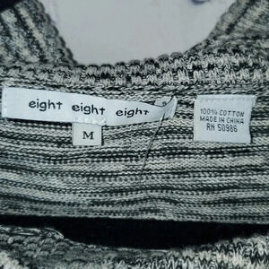 Eight Eight Eight Tunic Pullover Sweater Medium Pockets Cowl Neck Button Striped Marled Black/Gray and White NWT
