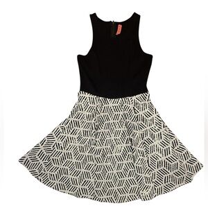 Eight Sixty Black/White Fit & Flare Midi Colorblock Dress w/ Sequin Skirt Small