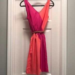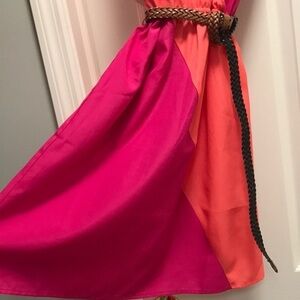 Eight Sixty Pink and Orange Belted Striped Dress