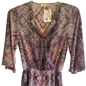 Eight Sixty Womens Bell Sleeve Cream Multicolor Lined Dress Multi Pattern Size M