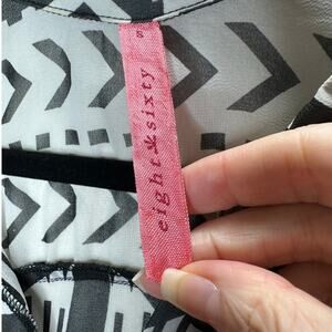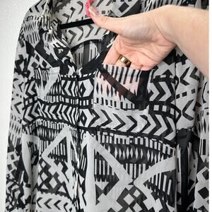 Eight Sixy Black & Gray Aztec Print Sheer Button Long Sleeve Blouse S