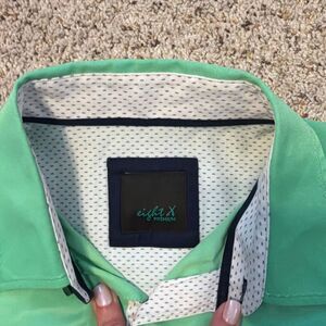 Eight X shirt, mens green dress shirt, button down modern fit, premium long sleeve shirt, medium slim fit shirt, contrast cuff shirt, tailored cotton blend shirt, mens fashion shirt, casual dress shirt, trendy menswear