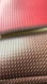 Stylish mesh backpack in red and brown. Features a zip closure and front pocket.