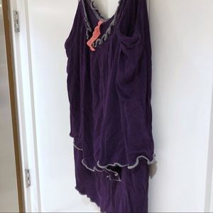 Size Small Royal purple with dove gray straps Two layered tiered ruffle top Soft stretch cotton blend