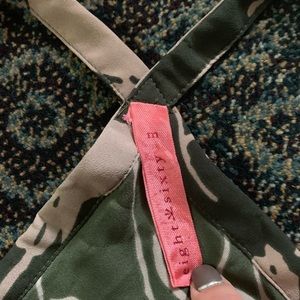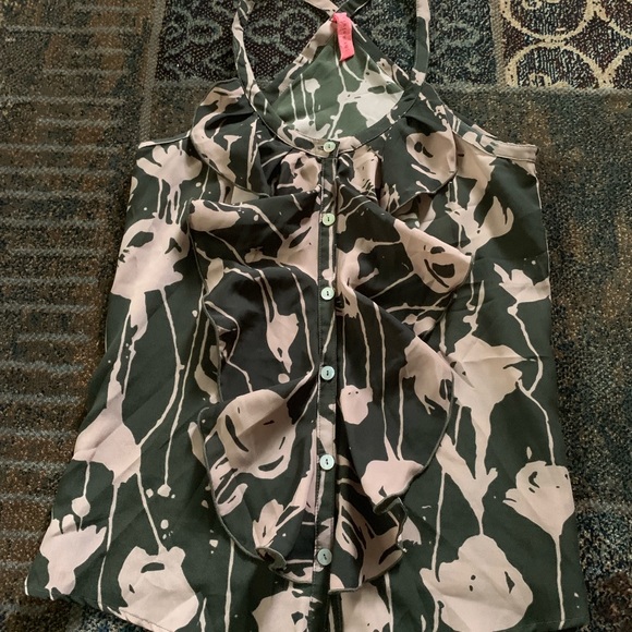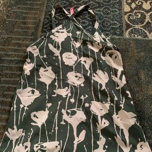Hunter green and pale pink floral top with racer back tank. Fitted across the bust.
