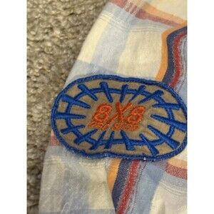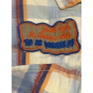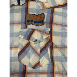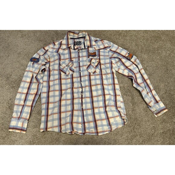 The EightX 8X Brand Plaid Long Sleeve Shirt in Men's Size XXL with various patches see pics. Gently used