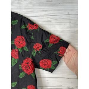 Eighth Avenue Shirt Mens Large Black Red Rose Floral Button Up Cotton Casual