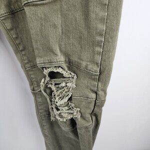 Eighth Dstrkt Jeans Mens 40x33 Green Distressed Biker Denim