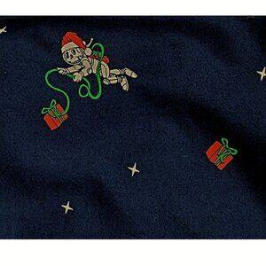 Second shirt is dark blue with skeleton, spacesuit santas, snowflakes and stars