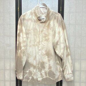 Eighty Eight Long Sleeve Collared Button Up Watercolor Stripe Shirt White Tan XL
