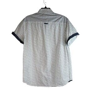 Eighty Eight Men's Short Sleeve White Blue Button Down 100% Cotton Shirt Large