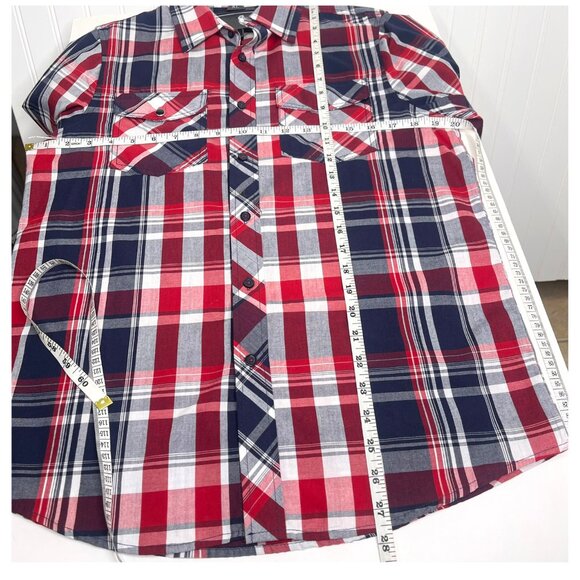 Men's Plaid Cotton Blend Long sleeve, Roll Up Shirt Navy, Red & White Size Small. Plaid Men's Long Sleeve Shirt Casual.