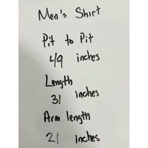 Measurements from photo note: Pit to pit 49 inches; Length 31 inches; Arm length 21 inches