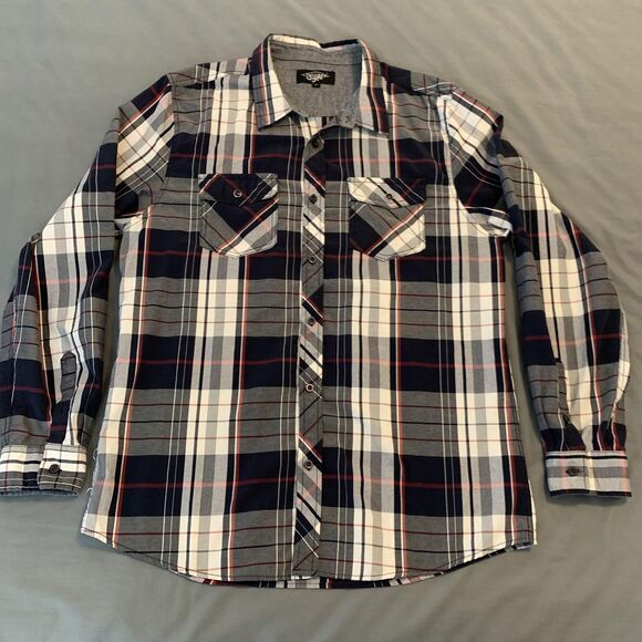 Eighty Eight Shirt Mens XL Gray Navy Red Plaid Button Front Long Sleeve Western