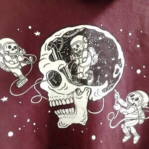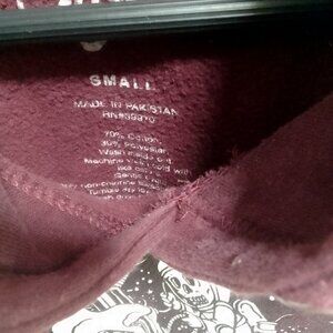 Skull Long Sleeved Sweatshirt/Hoodie. Brand: Eighty Eight. Size: Small. Material: 70% Cotton, 30% Polyester.Made in Pakistan. Condition: Preowned, there are no drawstrings and there is a small amount of a stitching problem at the bottom of the hoodie. Comes from a smoke free home. Thanks for watching!