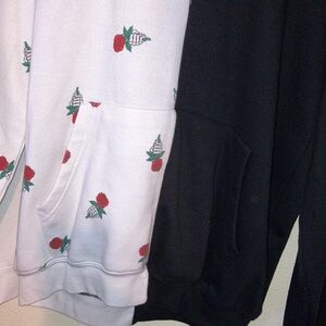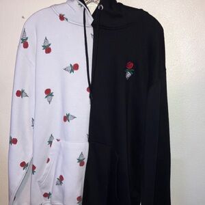 Unique hoodie by Eighty Eight. Features half white and half black, skeleton hand holding rose embroidery. Comes with two bonus matching beanie’s. Comfortable and trendy. Preowned.