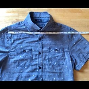 Attractive fitting button up shirt, in excellent condition! Color is a greyish blue. Shipped from a smoke and pet free home.