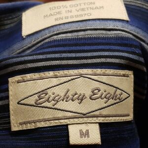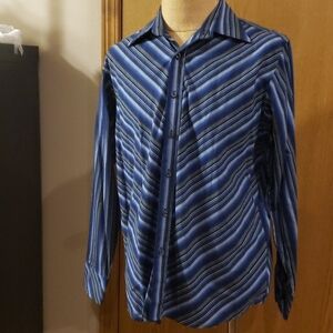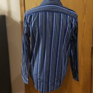 Blue and grey striped dress shirt by eighty eight nice shirt with no issues size medium