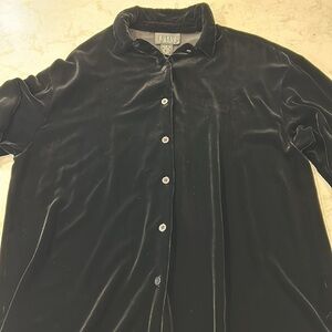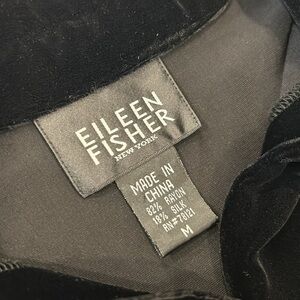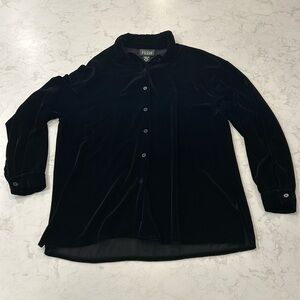 Eileen Fischer Black Velvet Button Down Silk Long Sleeve Blouse Medium