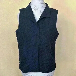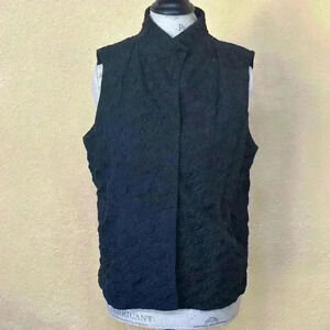 Eileen Fisher 100% Black Quilted Silk Vest Size Petite Large EUC!