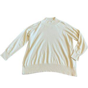 Eileen Fisher 100% Cashmere Cream Pullover Sweater Mock Neck Stretch Size XL