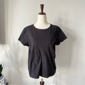 Eileen Fisher 100% Cotton Thick Basic Black Crew Neck Tee Shirt