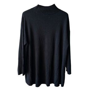 Eileen Fisher 100% Extra Fine Merino Wool Mock Neck Sweater Black Size XL