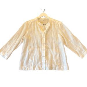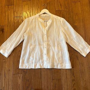 Eileen Fisher 100% Irish linen button front pocket blouse M