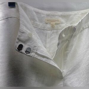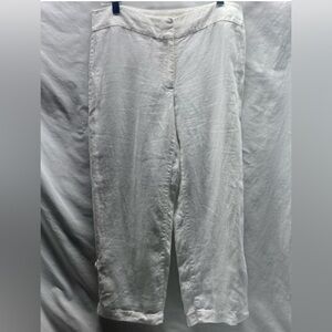 Eileen Fisher 100% LINEN Crops Straight Leg White Crop XS S Roll Tab Legs