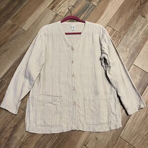 Eileen Fisher Linen Button Down Top Long Sleeve Pockets