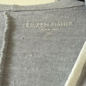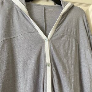 Eileen Fisher 100% Linen Cardigan Hoodie Button Up Size XS Coastal Gray White