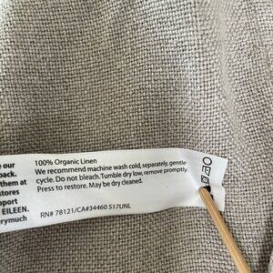 100% organic linen. Size large. See measurements in pictures. Pockets. Heavyweight linen