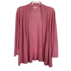 Eileen Fisher 100% Linen Pink Open Front Cardigan Size XL 3/4 Sleeve Classic