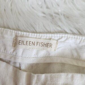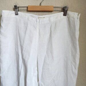 Eileen Fisher 100% Linen White Wide Leg Pants Women Medium Side Zip 34x27"