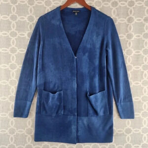 Eileen Fisher 100% Merino Wool Button Blue Tie Dye Cardigan Sweater XS/ TP