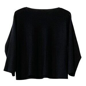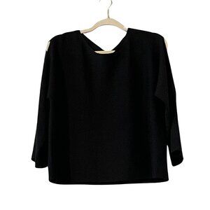 Eileen Fisher 100% Merino Wool Cold Shoulder Arm Slit Boxy Top in Black Sz. XS