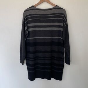 Eileen Fisher | 100% Merino Wool Drop Shoulder Long Sleeve Gray Striped Sweater Medium Tunic