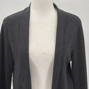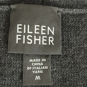 Eileen Fisher 100% Merino Wool Italian Yarn Open Front Cropped Cardigan - Medium. Excellent pre-owned condition. Color is Charcoal Gray. Cropped length, 100% merino wool, Italian yard, open front. Approximate measurements: 19" pit to pit, 19" length.