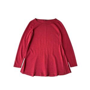 Eileen Fisher 100% Merino Wool Orange Red Long Sleeve Tunic Top Size M Petite