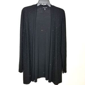 Eileen Fisher 100% Merino Wool Sparkle Open Front Cardigan Sz L Black Lagenlook