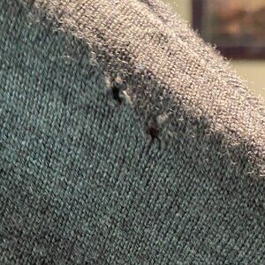 Good preowned condition. Slight wear to fabric; some pilling, no stains. There are two small holes on the top of the left sleeve (see photo)